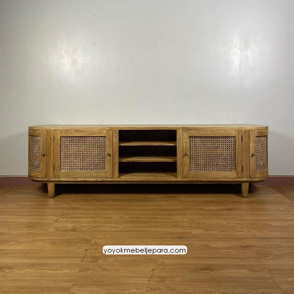 Bufet Meja TV Kayu Jati Kombinasi Rotan Model Minimalis YMJ-BFTV 169