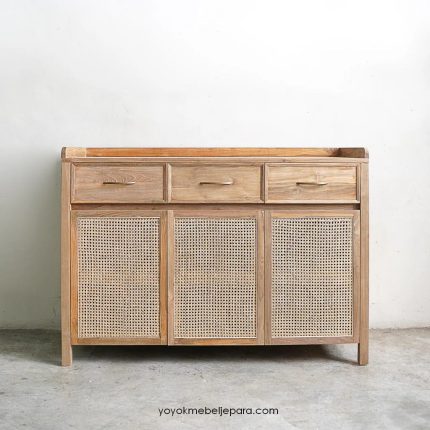 Buffet Modern Minimalis Kayu Jati Kombinasi Rotan YMJ-BFT 150