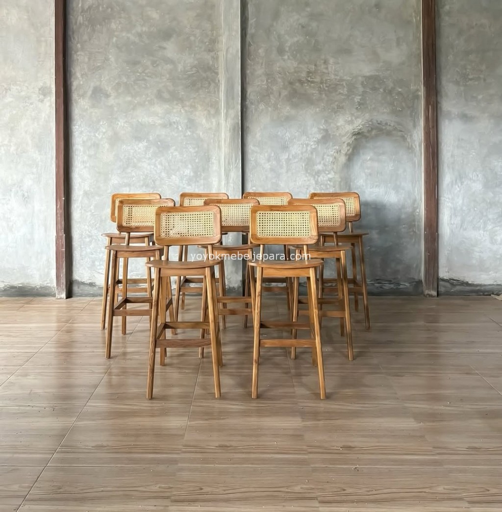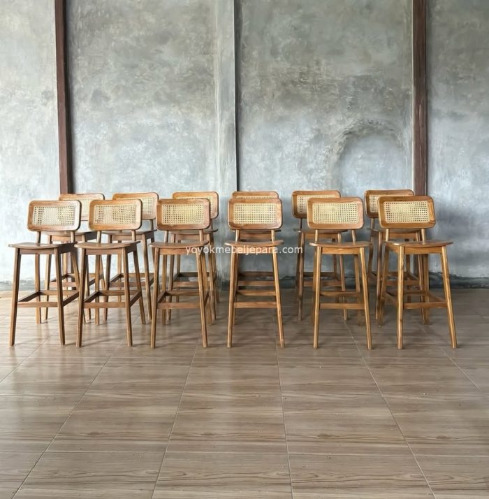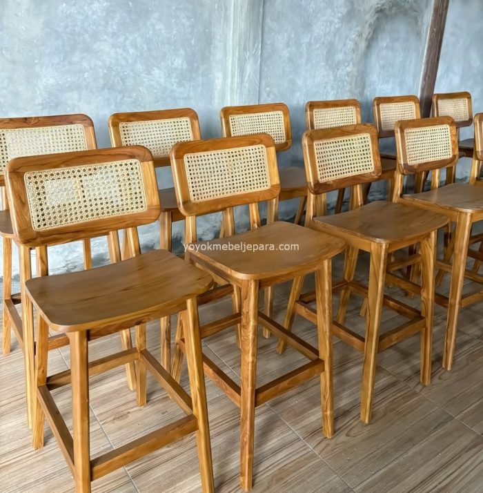 Kursi Bar Kayu Kombinasi Rotan Minimalis YMJ KBR 72
