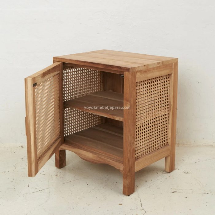 Nakas Kayu Jati Kombinasi Rotan Model Minimalis Modern YMJ-NKS 47