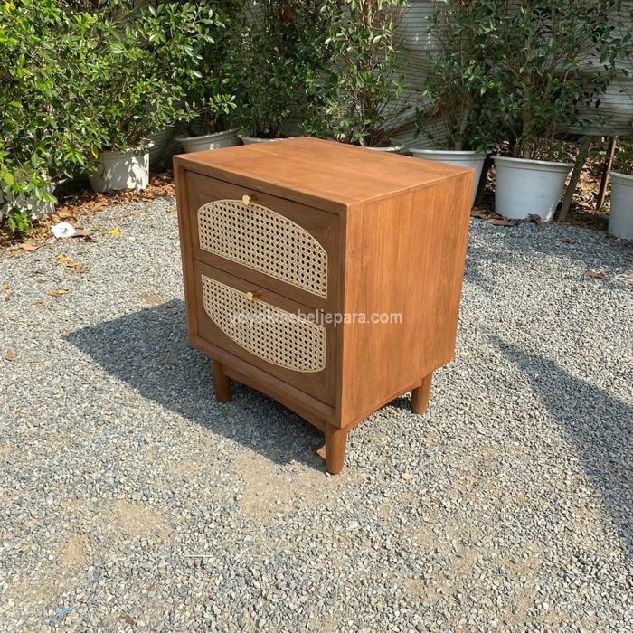Nakas Kayu Jati Model Minimalis Kombinasi Rotan YMJ-NKS 20