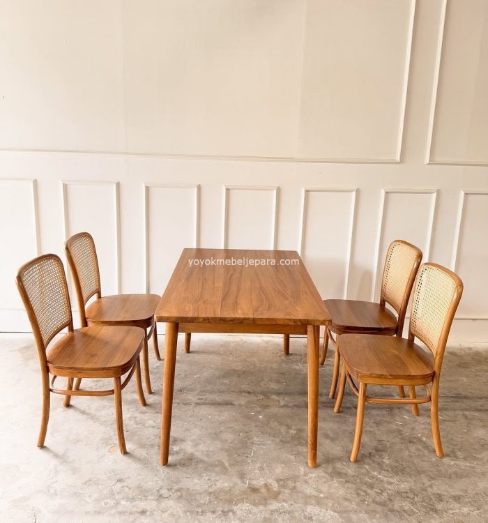 Set Kursi Makan Minimalis Kayu Jati x Rotan YMJ-SKM 05