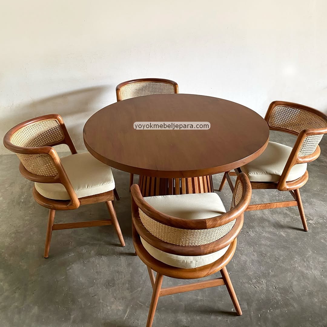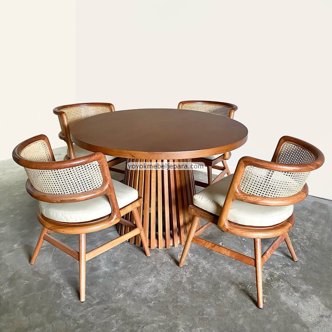 Set Meja Makan Minimalis 4 Kursi Kayu Jati Kombinasi Rotan YMJ-SKM 209