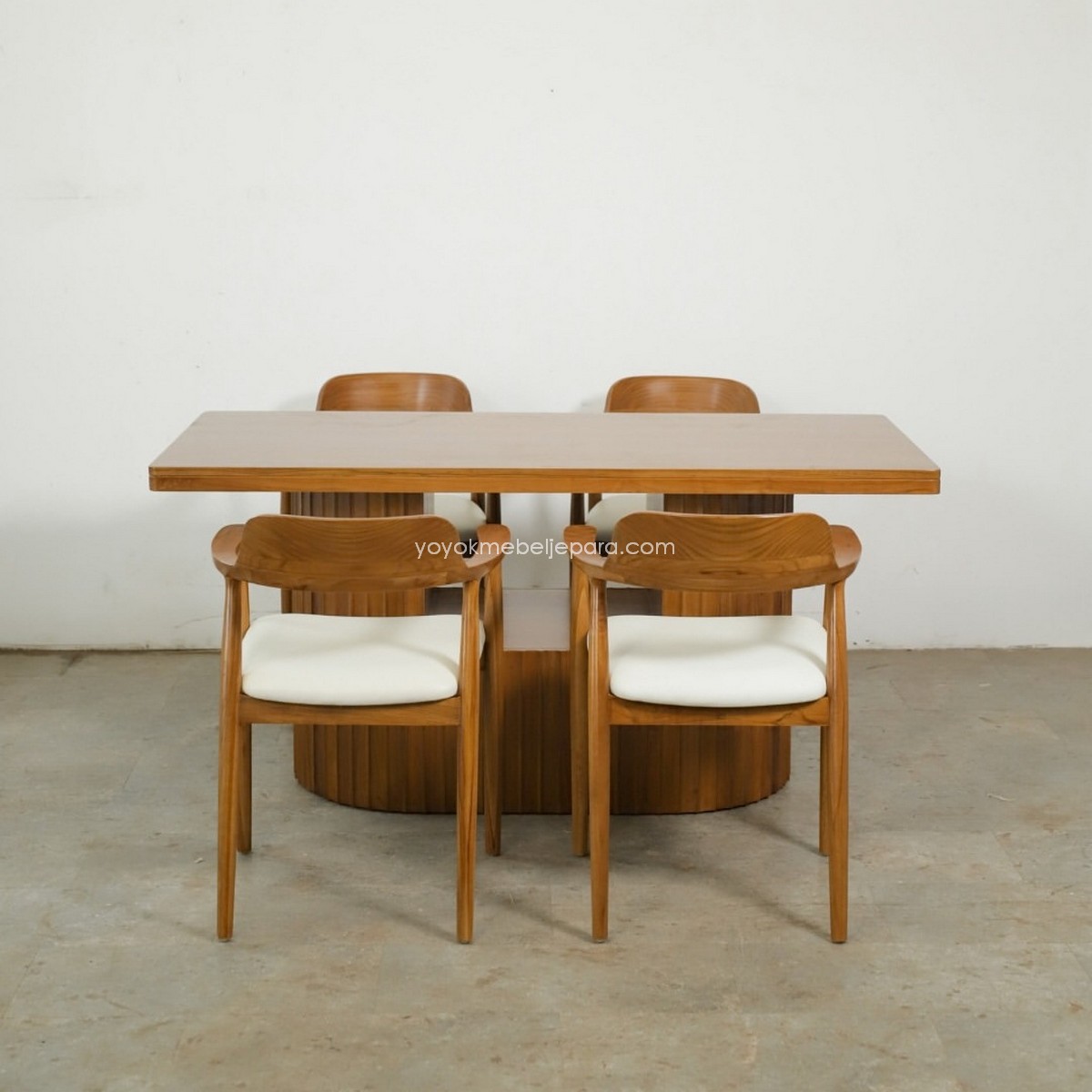 Set Meja Makan Minimalis 4 Kursi Kayu Jati YMJ-SKM 233